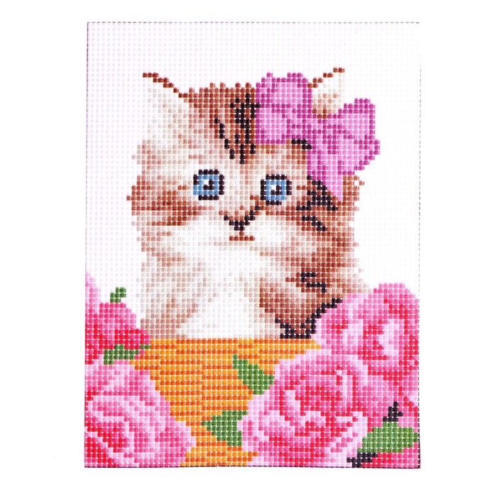 Канва для вышивки крестиком «Котёнок в корзинке», 20х15 см