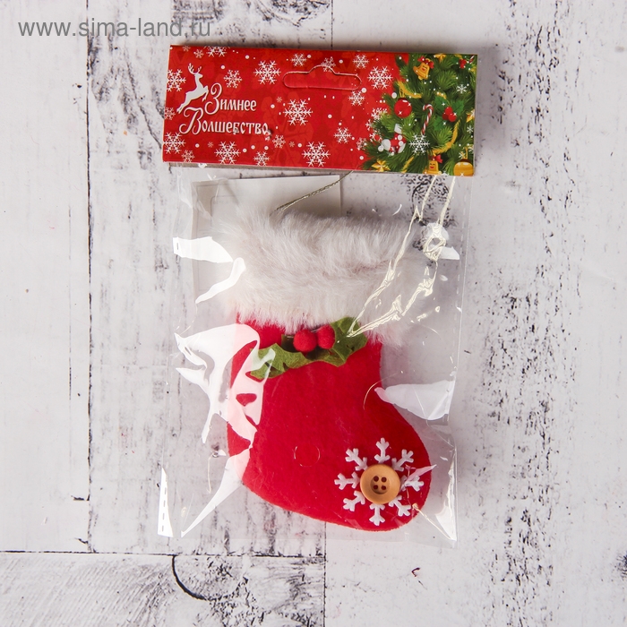 Мягкая подвеска "Рождественский носок сюрприз" 6,5х10 см, бело-красный