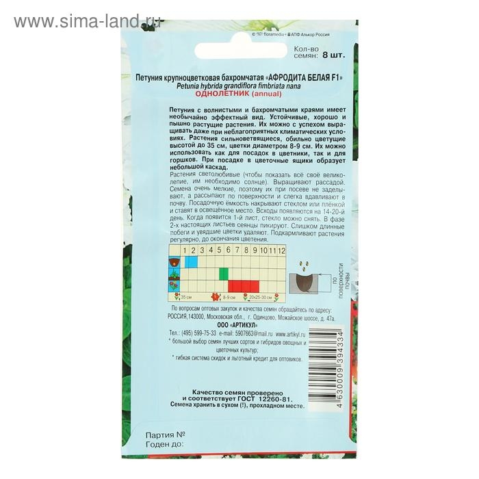 Семена цветов Петуния крупноцветковая бахромчатая «Афродита Белая» F1, О, 8 шт.