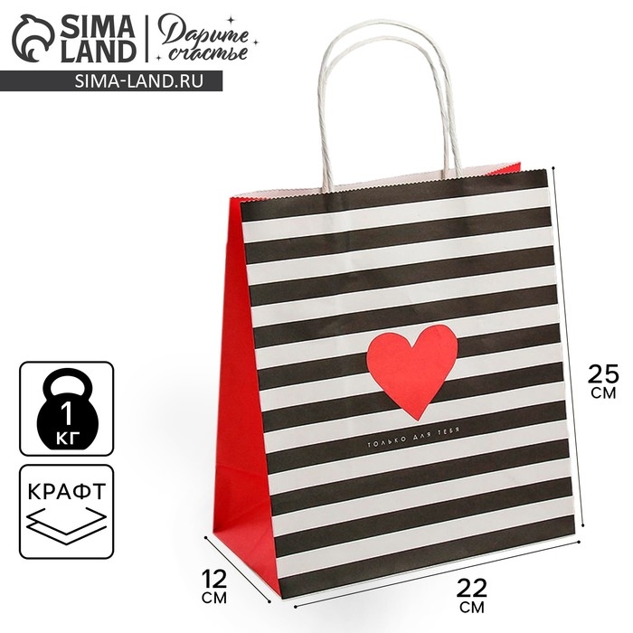 Пакет подарочный крафт, упаковка, «С Любовью», 22 х 25 х 12 см