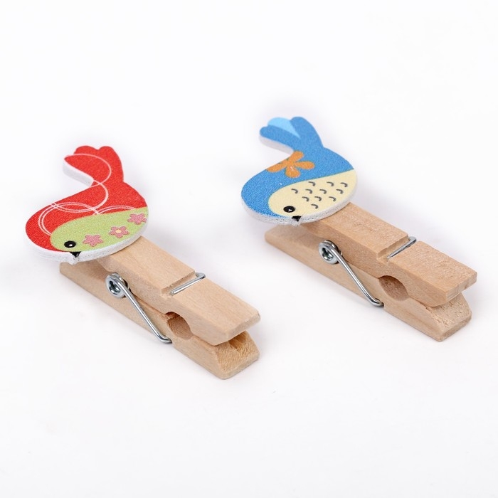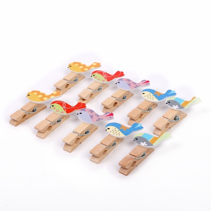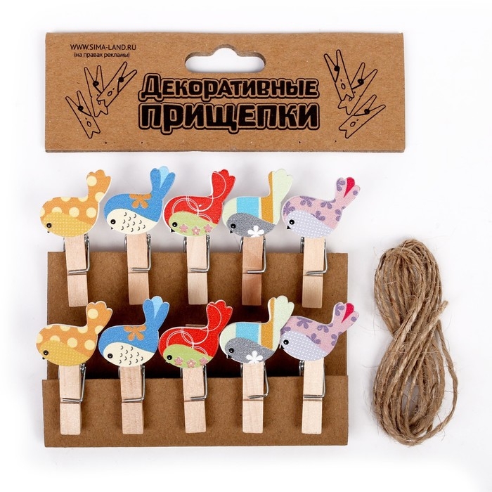 Прищепки декоративные с веревкой для подвеса «Весенние птички» набор 10 шт.