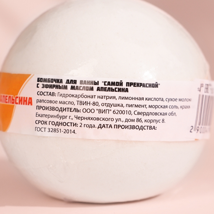 Бомбочка для ванны "Самой прекрасной" с эфирным маслом апельсина, 140 гр