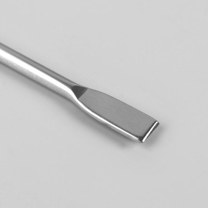 Шабер – это двусторонний инструмент, предназначенный для очистки ногтя, отодвигания кутикулы и удаления тонкой кожицы у основания пластины. Он сделан из металла, хорошо заточен и не травмирует ручки. Рукоятка удобно лежит в руке, а качественный материал обеспечит долгий срок службы.