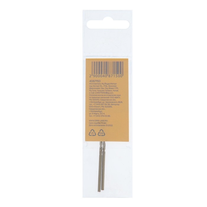 Сверло по металлу ТУНДРА, HSS-Co (5% кобальта), цилиндрический хвост., 2 мм, 2 шт.