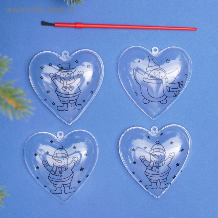 Набор новогодних украшений под раскраску «Сердце» 2 шт., размер собранного: 6,5 см,МИКС