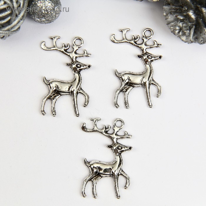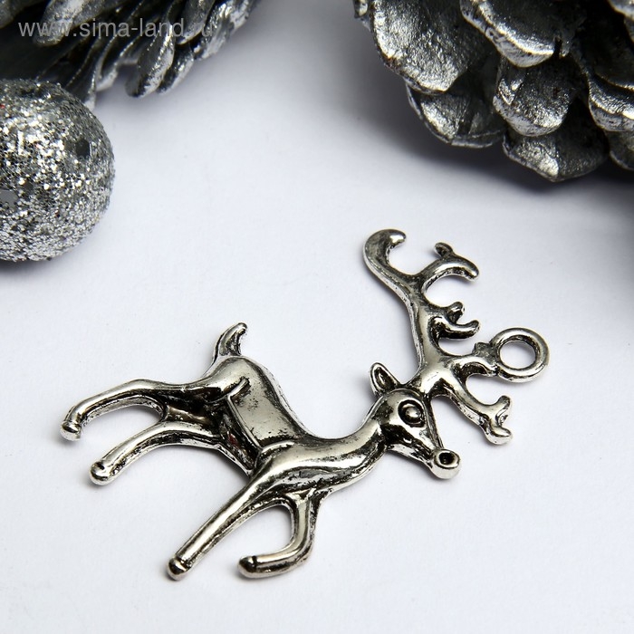 Декор для творчества металл "Олень - серебряное копытце" серебро 2,3х3,7 см