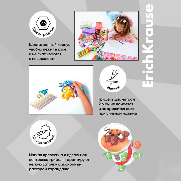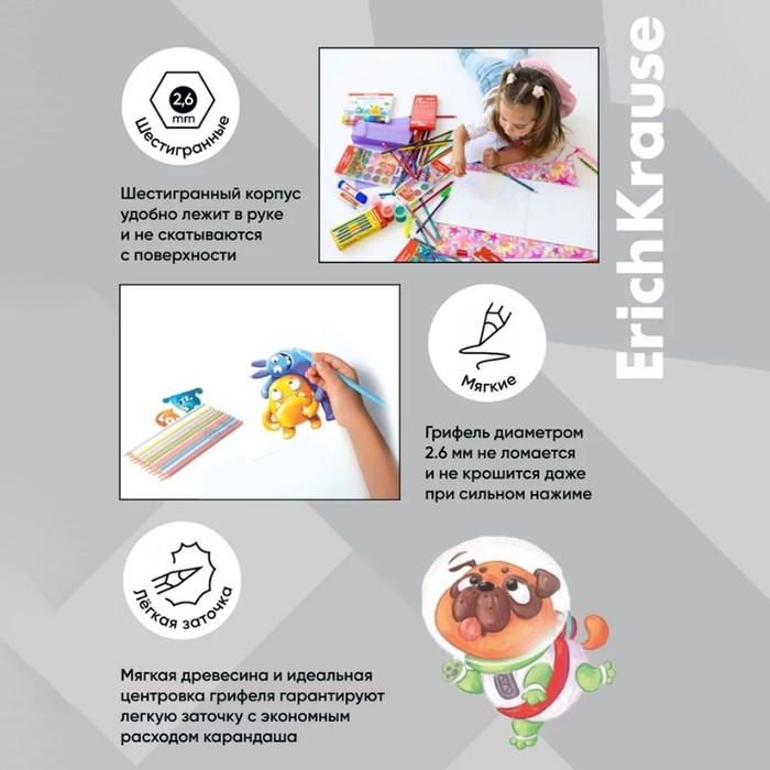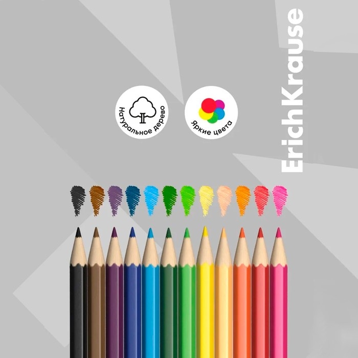 Карандаши 24 цвета ErichKrause ArtBerry премиум, дерево, шестигранные, яркий и мягкий грифель 3.0 мм, картонная упаковка, европодвес