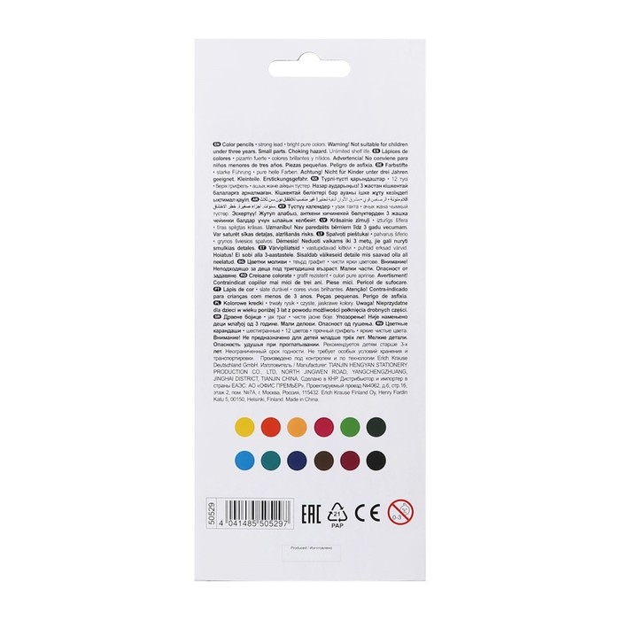 Карандаши 12 цветов ErichKrause Basic, дерево, шестигранные, 2.6 мм грифель, картонная упаковка, европодвес