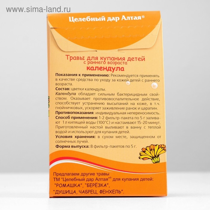 Травы для купания детей с раннего возраста «Целебный дар Алтая», календула, 8 фильтр-пакетов по 5 г