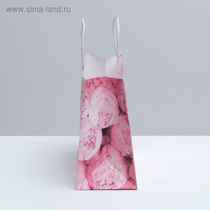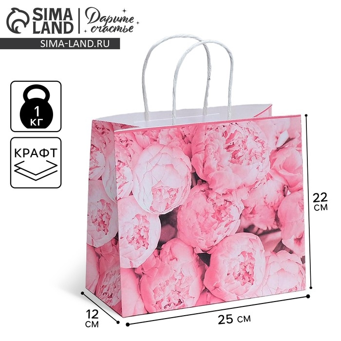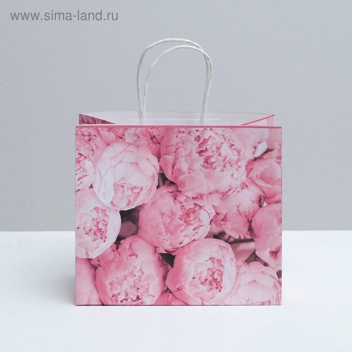 Пакет подарочный крафтовый, упаковка, «Пионы», 25 х 22 х 12 см