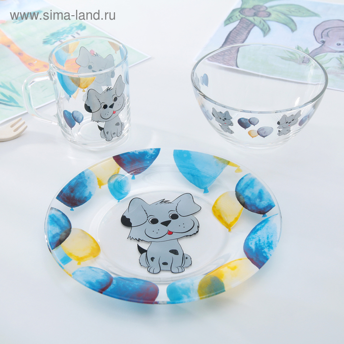 Набор детской посуды Доляна «Шарик», 3 предмета: кружка 200 мл, миска 450 мл, тарелка d=20 см