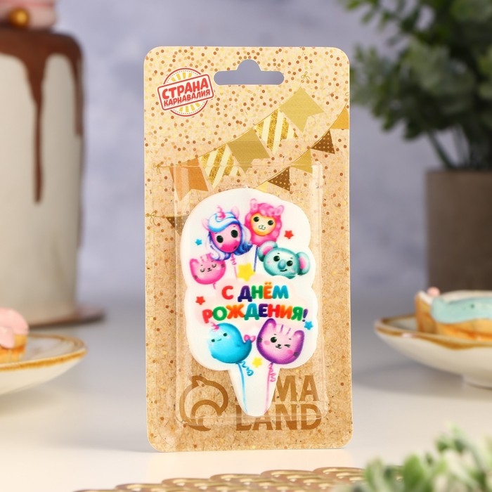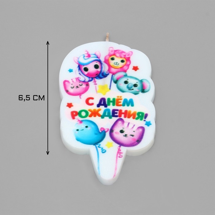 Свеча для торта "С Днём Рождения, Шарики зверятки", 6,5 см
