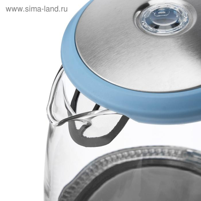 Чайник электрический ENERGY E-279, стекло, 1.5 л, 2200 Вт, голубой