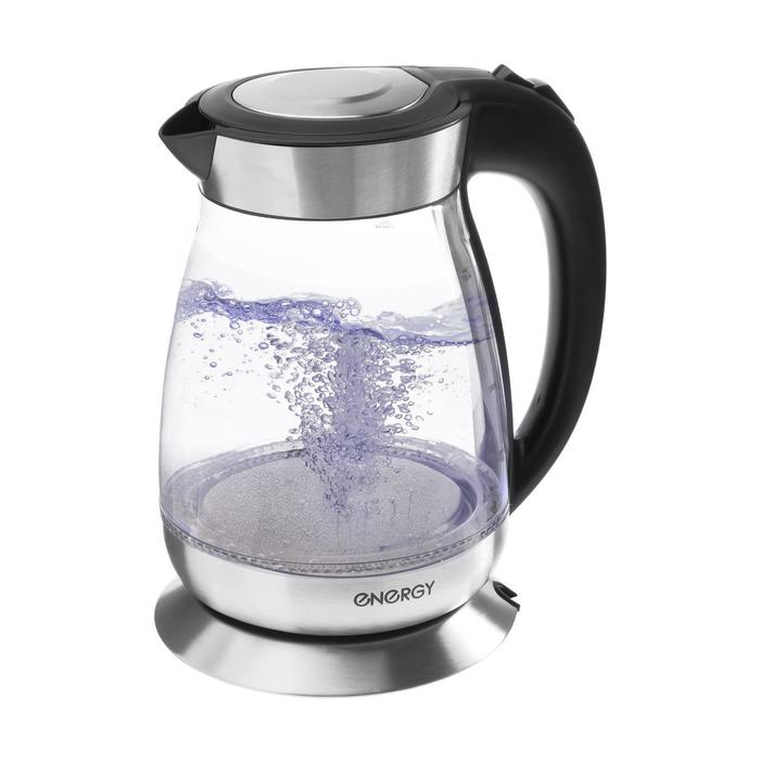 Чайник электрический ENERGY E-282, стекло, 1.7 л, 2200 Вт, серебристый