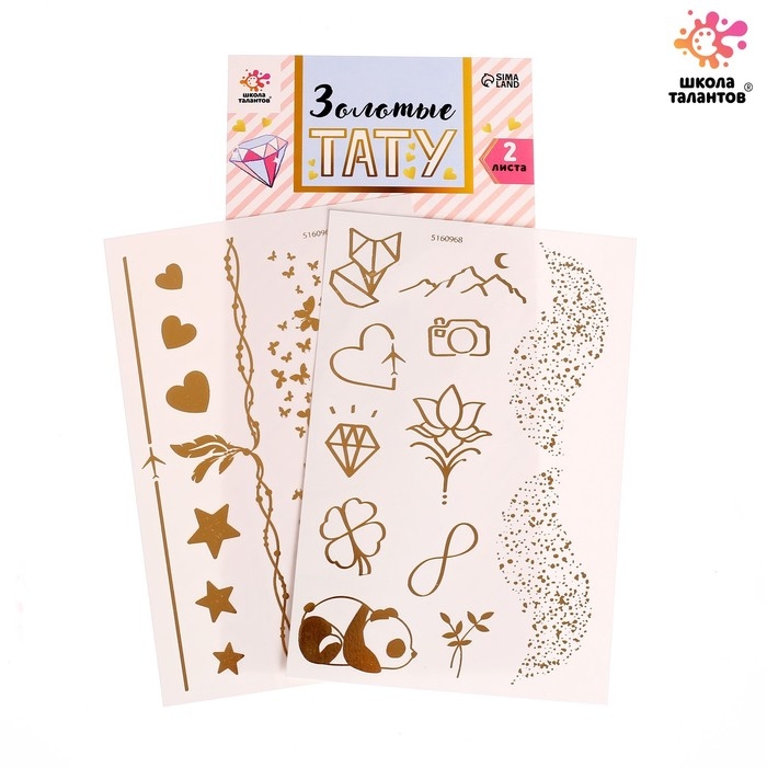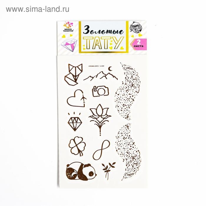 Детские татуировки-переводки, 10×15 см, набор 2 листа, золото, «Зверята, узоры»