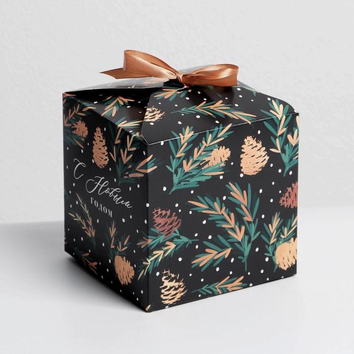 Коробка подарочная новогодняя складная «Шишки», 12 х 12 х 12 см, Новый год