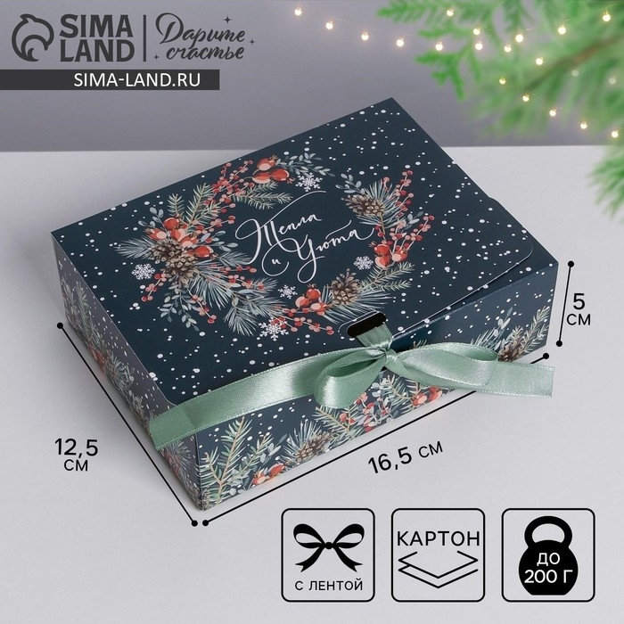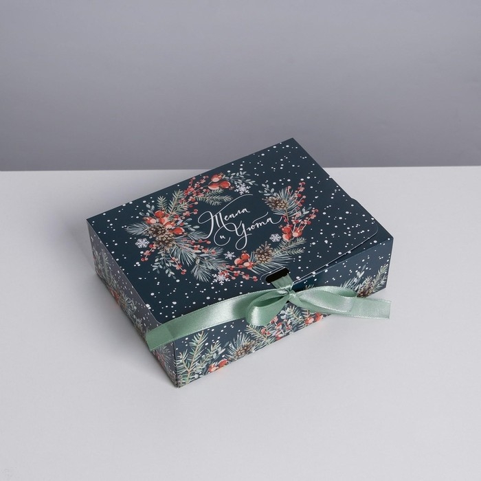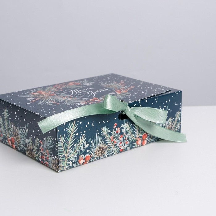 Коробка подарочная новогодняя складная «Новогодняя ботаника», 16.5 х 12.5 х 5 см, Новый год