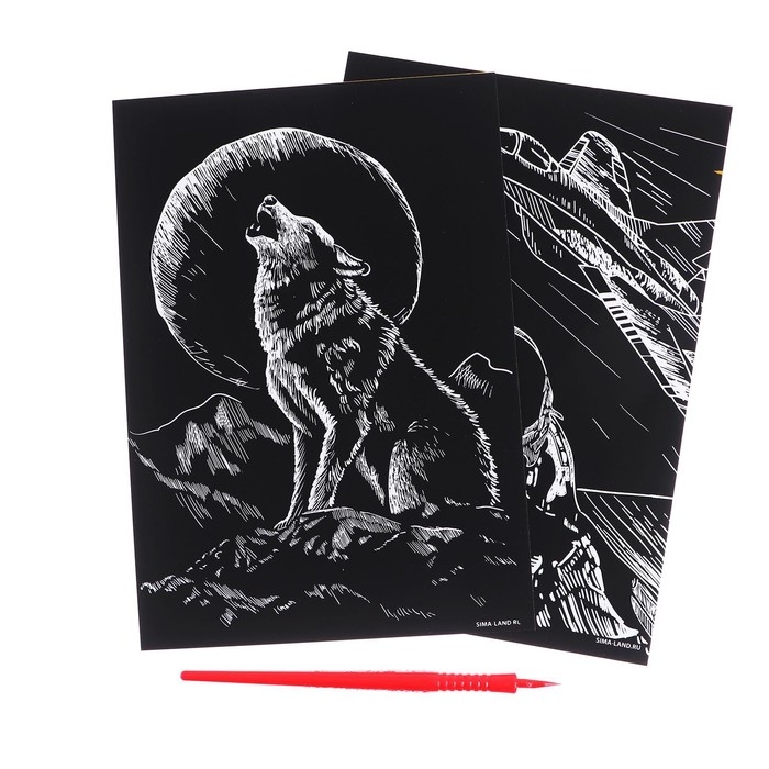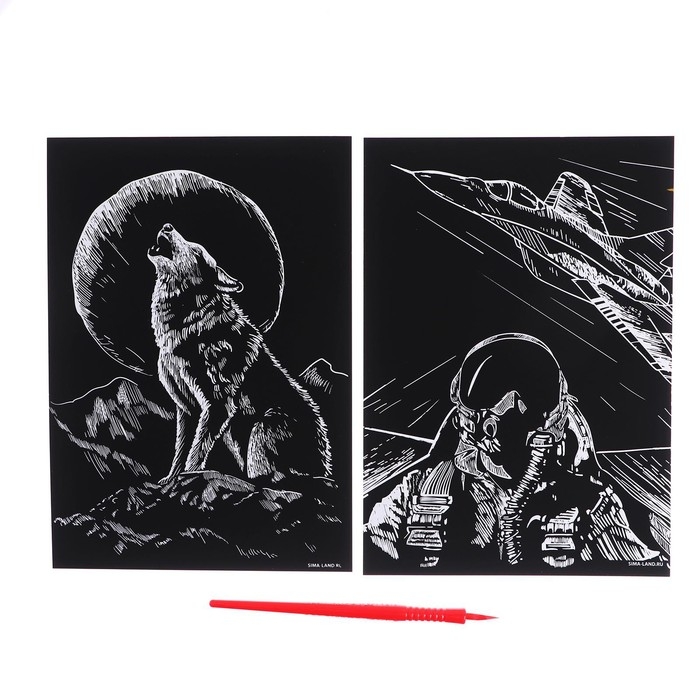 Набор гравюр «Волк и лётчик» с металлическим эффектом «золото», 2 шт., А5
