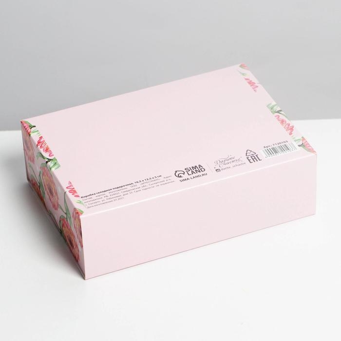 Коробка подарочная складная, упаковка, «Цветы», 16.5 х 12.5 х 5 см, БЕЗ ЛЕНТЫ