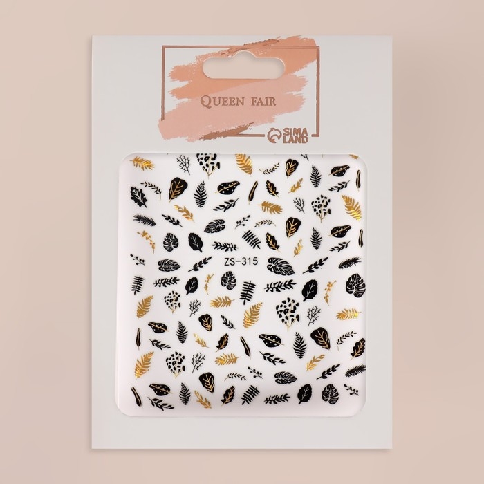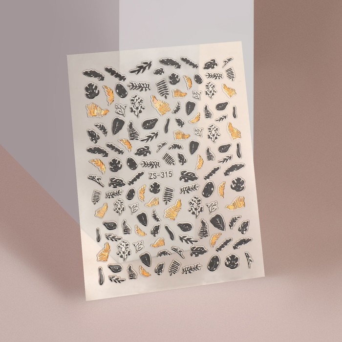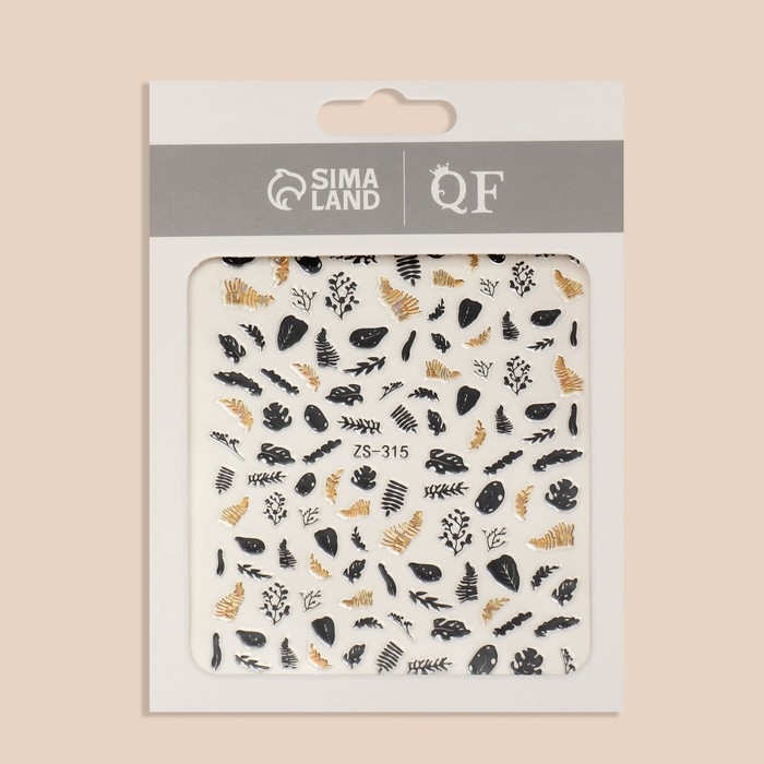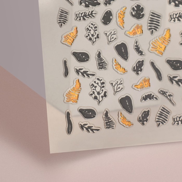 Наклейки для ногтей «Листопад», металлизированные, цвет золотистый/чёрный