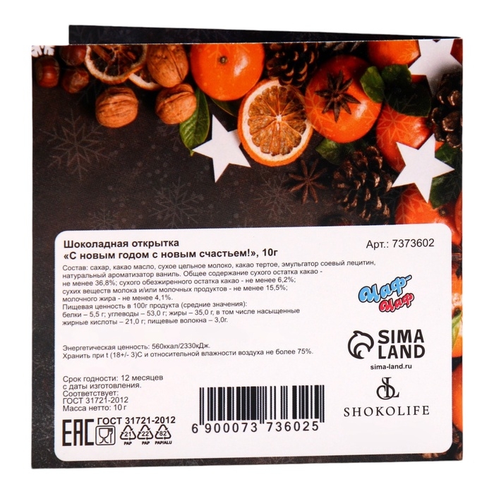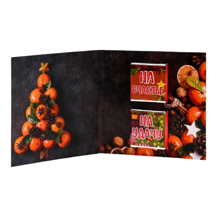 Шоколадная открытка – необычный и оригинальный способ поздравить с Новым годом! В ассортименте представлены интересные, забавные пожелания на любой вкус. Внутри каждой открытки вы найдёте маленькую шоколадку из настоящего шоколада высокого качества от российских и бельгийских производителей. Благодаря качественному составу, ваш сюрприз будет не только красивым, но и действительно вкусным!