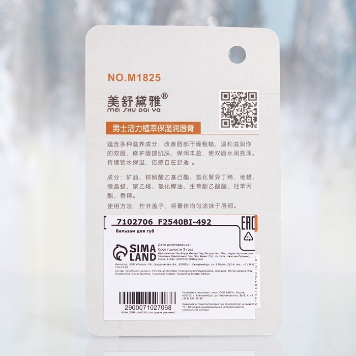 Способ применения: равномерно наносить на губы по мере необходимости.