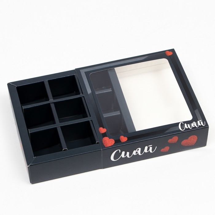 Коробка под 8 конфет + шоколад, с окном, белая, 17 х 5 х 17,5 х 3,7 см