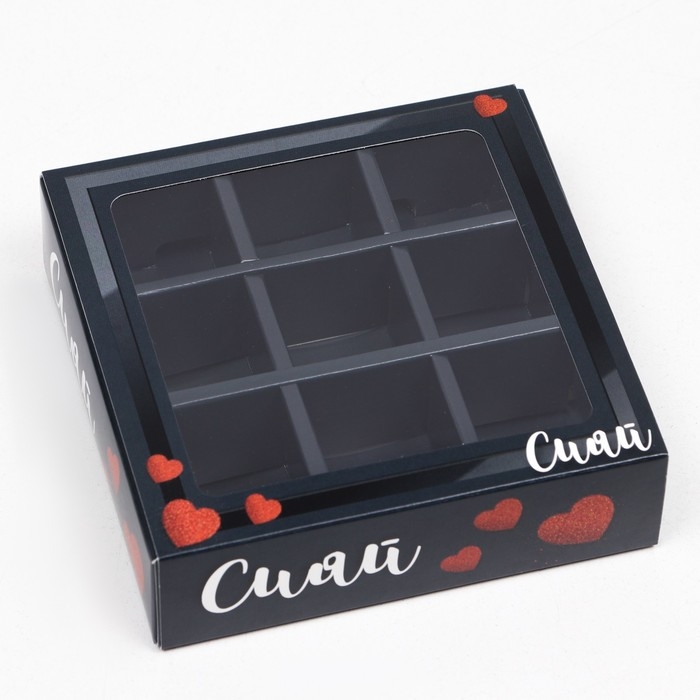 Коробка под 9 конфет с обечайкой "Сияй", 13,7 х 13,7 х 3,5 см