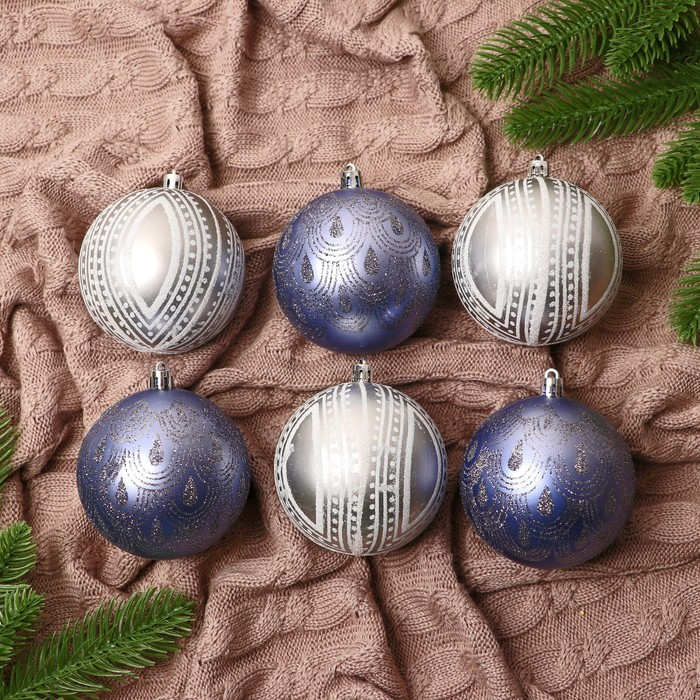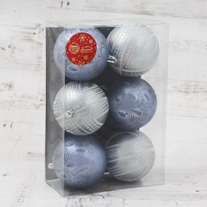 Набор шаров пластик d-8 см, 6 шт "Загадочный узор"