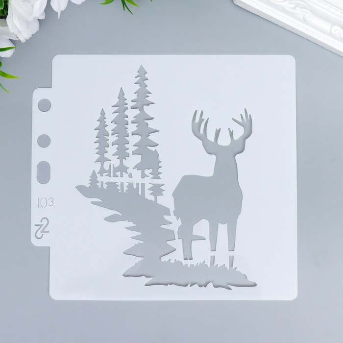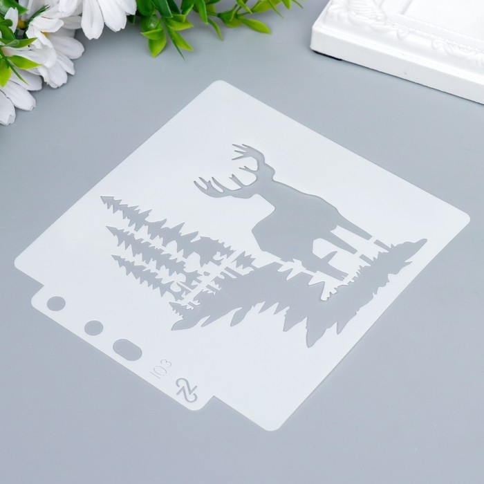Трафарет пластик "Олень в сосновом лесу" 13х14 см
