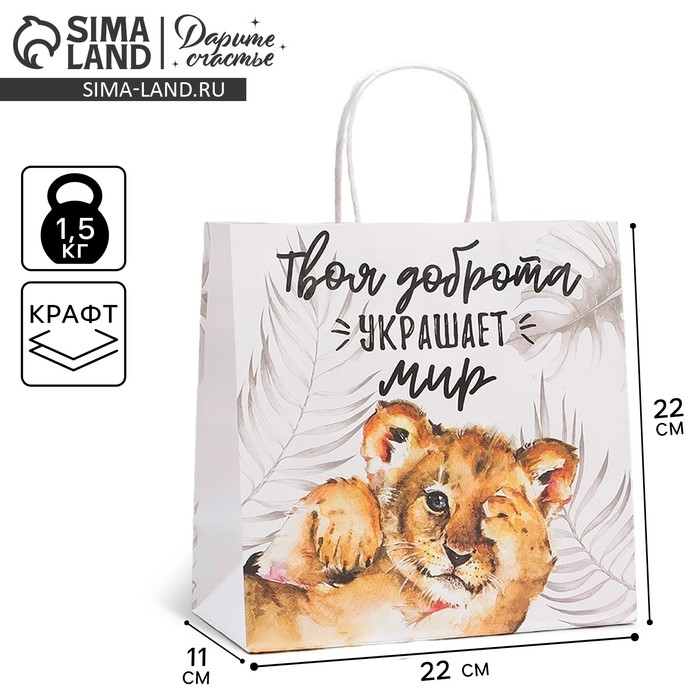 Пакет подарочный, упаковка, «Доброта», 22 х 22 х 11 см