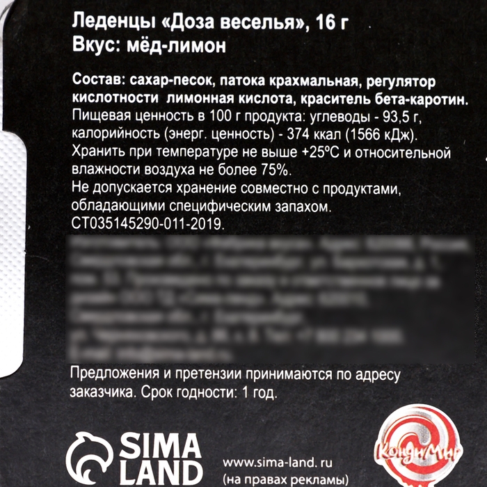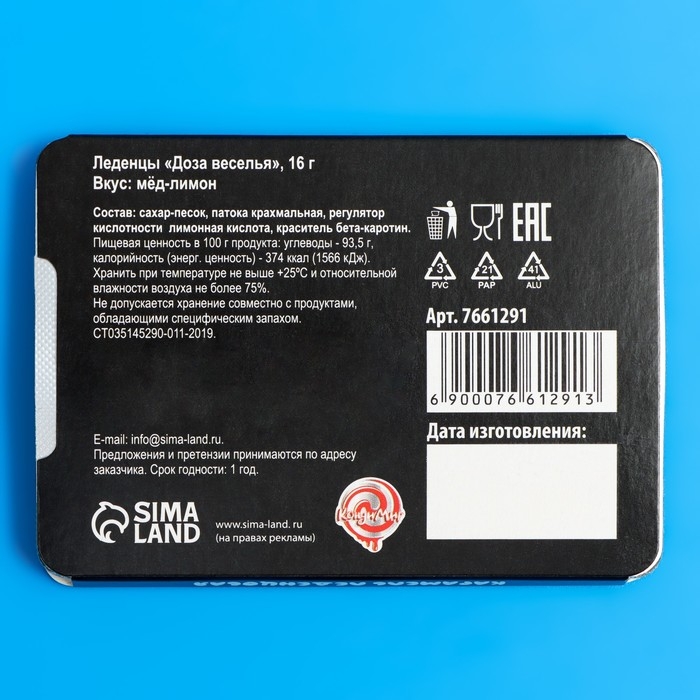 Леденцы "Доза веселья" со вкусом мёда и лимона, 16 г