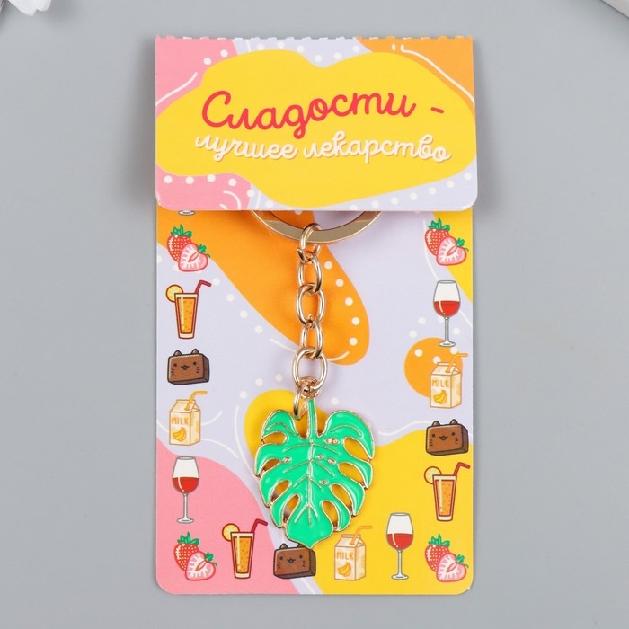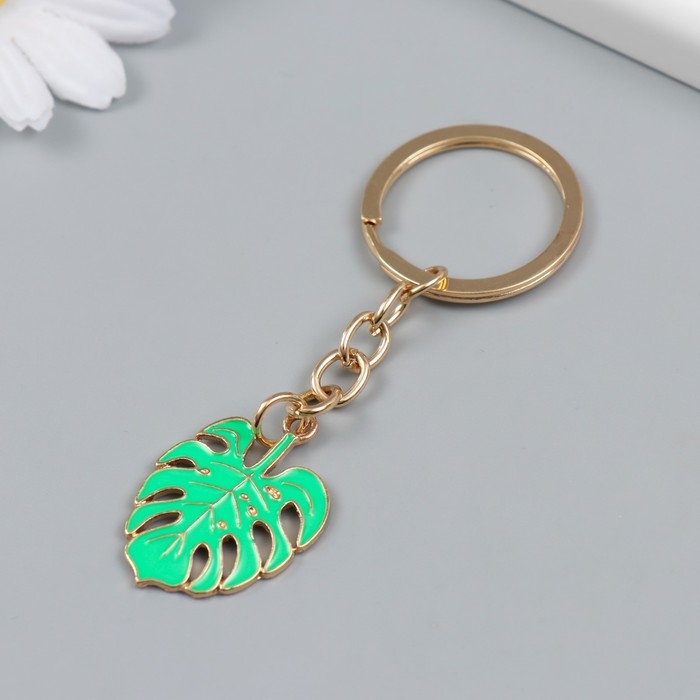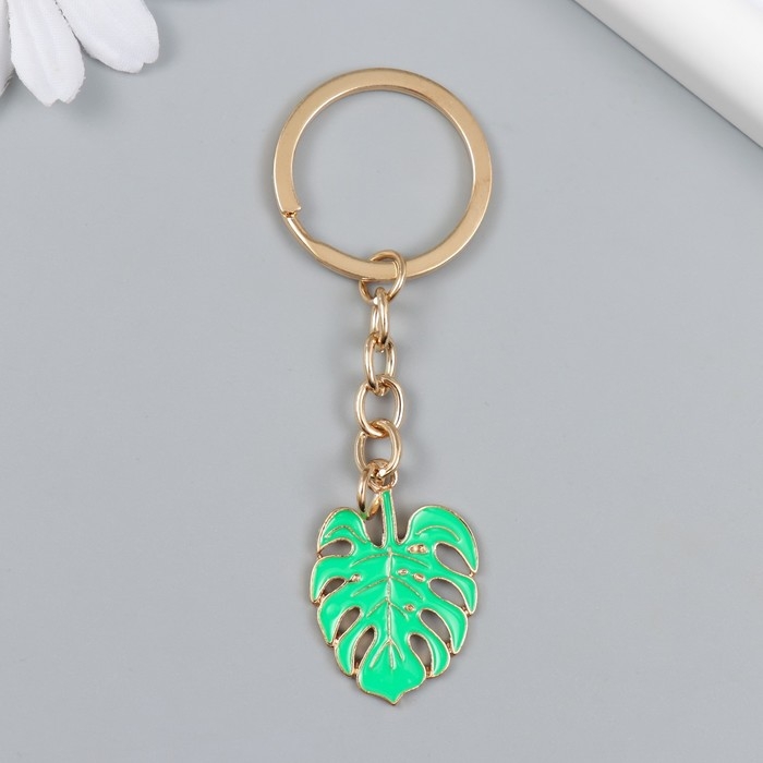 Брелок металл, эмаль "Лист монстеры" 10х2,3 см