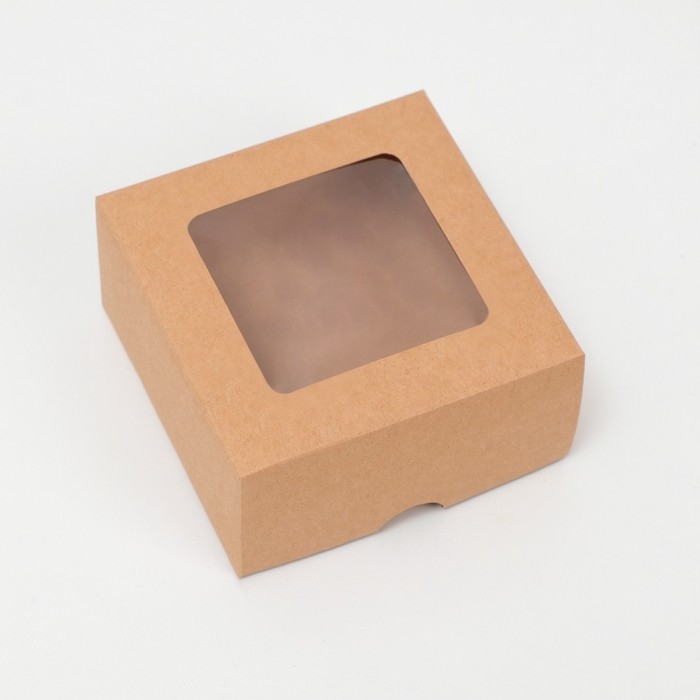 Коробка складная, крышка-дно, с окном, крафтовая, 10 х 10 х 5 см