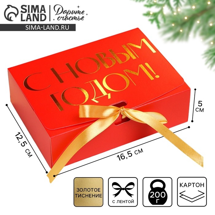 Коробка подарочная новогодняя складная «С новым годом», тиснение, красный, 16.5 х 12.5 х 5 см, Новый год