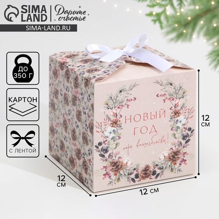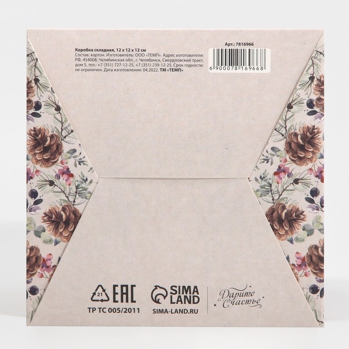 Коробка подарочная новогодняя складная «Новогодняя акварель», 12 х 12 х 12 см, Новый год