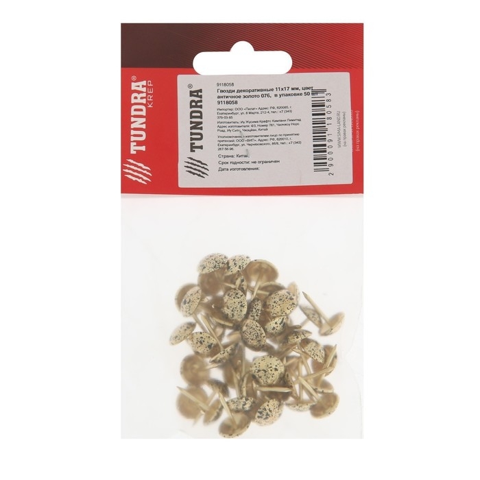 Гвозди ТУНДРА, декоративные, обивочные, 11х17 мм, античное золото, фасовка 50 шт