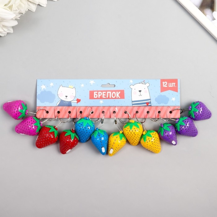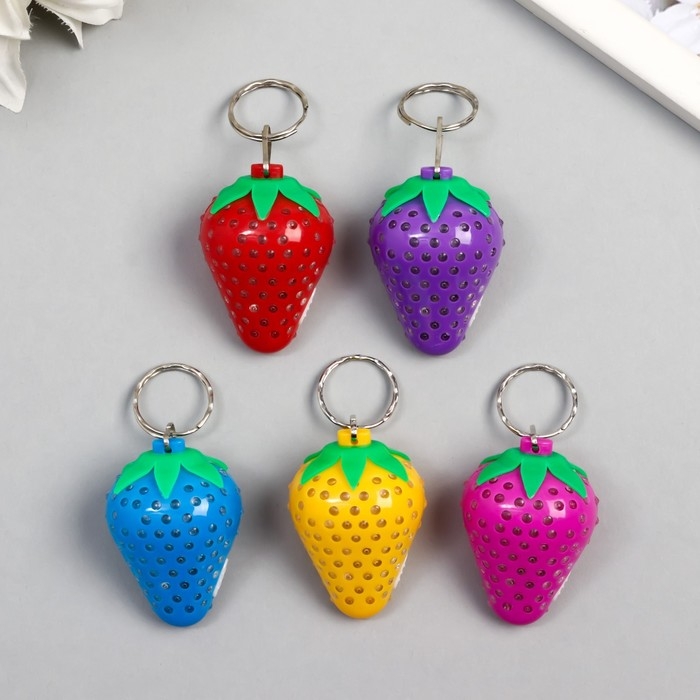 Фонарик свет на кольце "Клубничка" МИКС 3х3,4х4,6 см