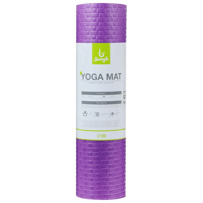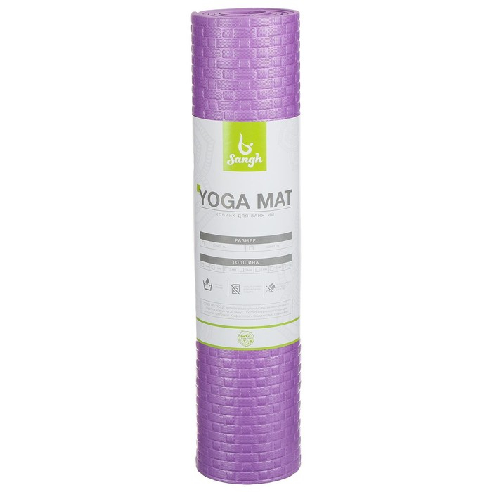 Коврик для йоги Sangh, 183х61х0,7 см, цвет фиолетовый