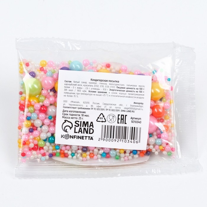 Посыпка кондитерская фигурная: розовая, голубая, желтая, белая, фиолетовая, 25 г.
