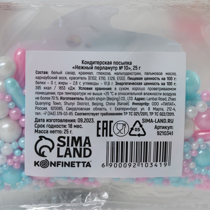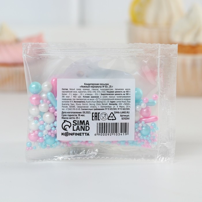 Кондитерская посыпка сахарная: голубая, белая, розовая, 25 г.