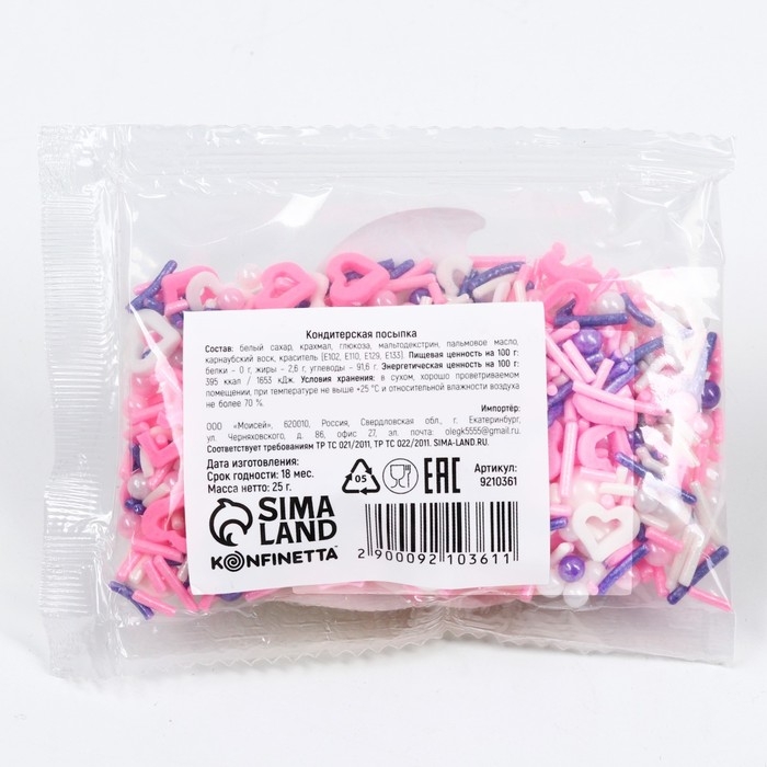 Посыпка кондитерская фигурная пасха: «Сердечки»: розовая, белая, фиолетовая, 25 г.