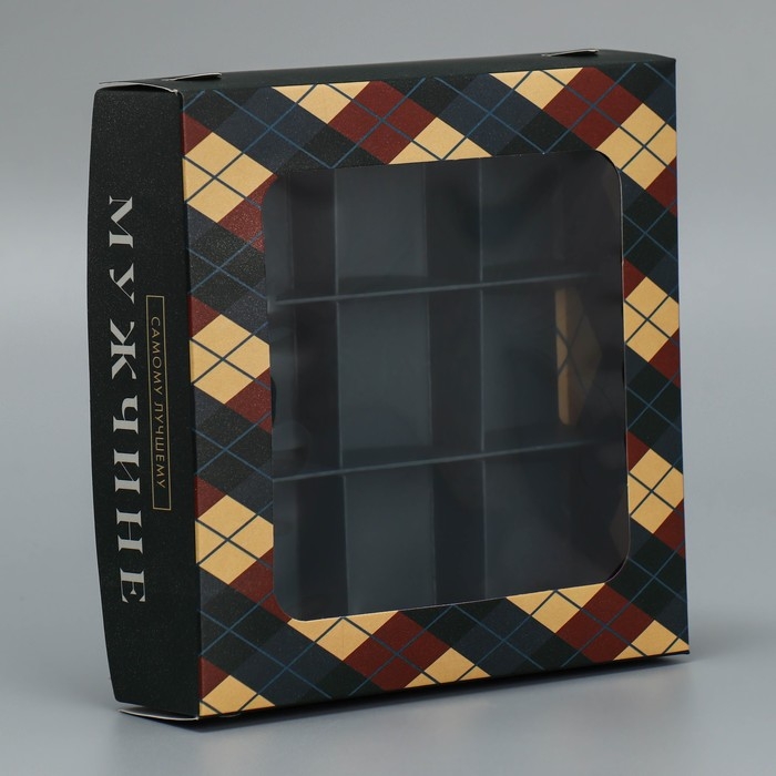 Коробка для конфет, кондитерская упаковка, 9 ячеек, «Самому лучшему мужчине», 14.7 х 14.7 х 3.5 см