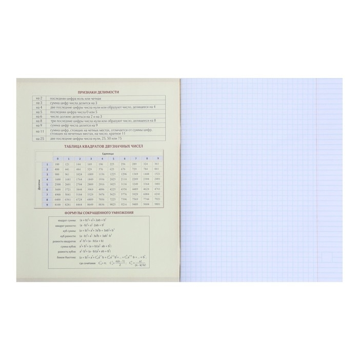 Тетрадь предметная Calligrata "Мрамор светлый", 48 листов в клетку Алгебра, со справочным материалом, обложка мелованный картон, УФ-лак, блок офсет
