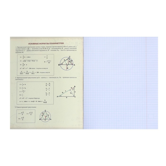 Тетрадь предметная Calligrata "Мрамор светлый", 48 листов в клетку Геометрия, со справочным материалом, обложка мелованный картон, УФ-лак, блок офсет