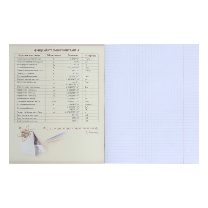 Тетрадь предметная Calligrata "Мрамор светлый", 48 листов в клетку Физика, со справочным материалом, обложка мелованный картон, УФ-лак, блок офсет