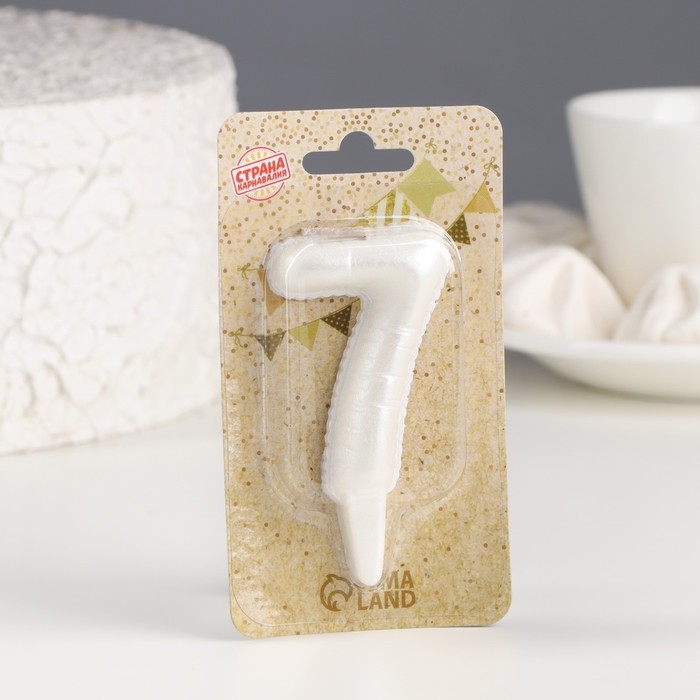 Свеча в торт "Шары", цифра "7", жемчужный, 5,5 см