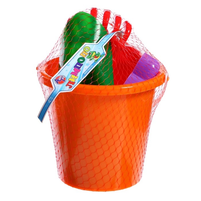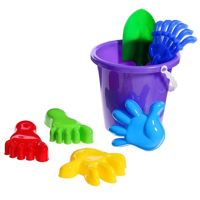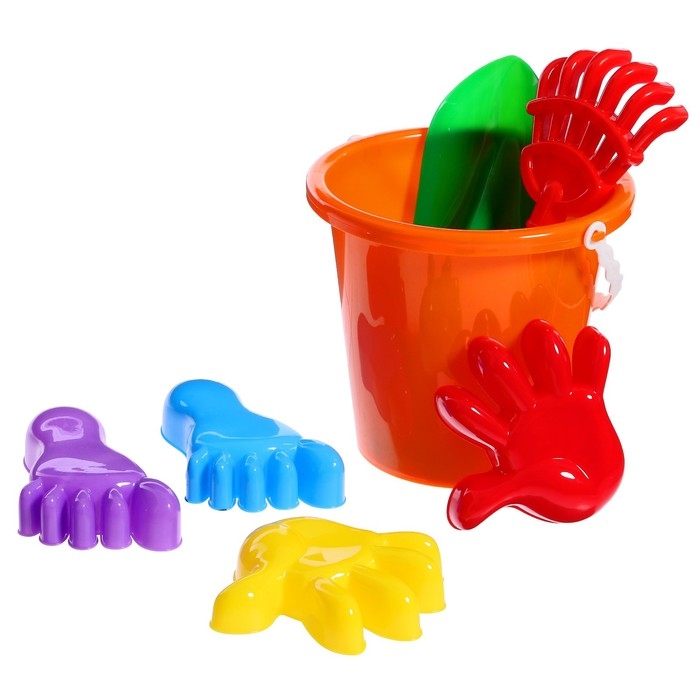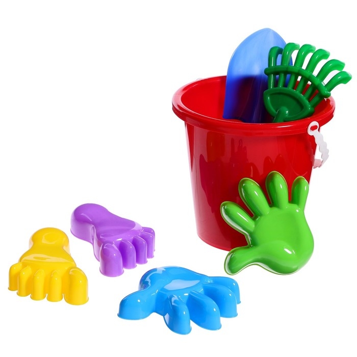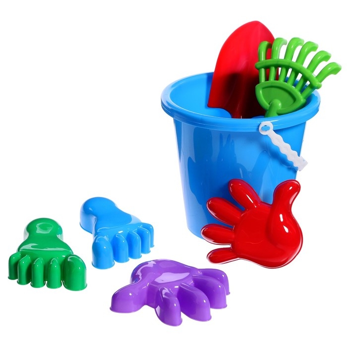 Набор для игры в песке №20: ведро большое, совок, грабли, 4 формочки