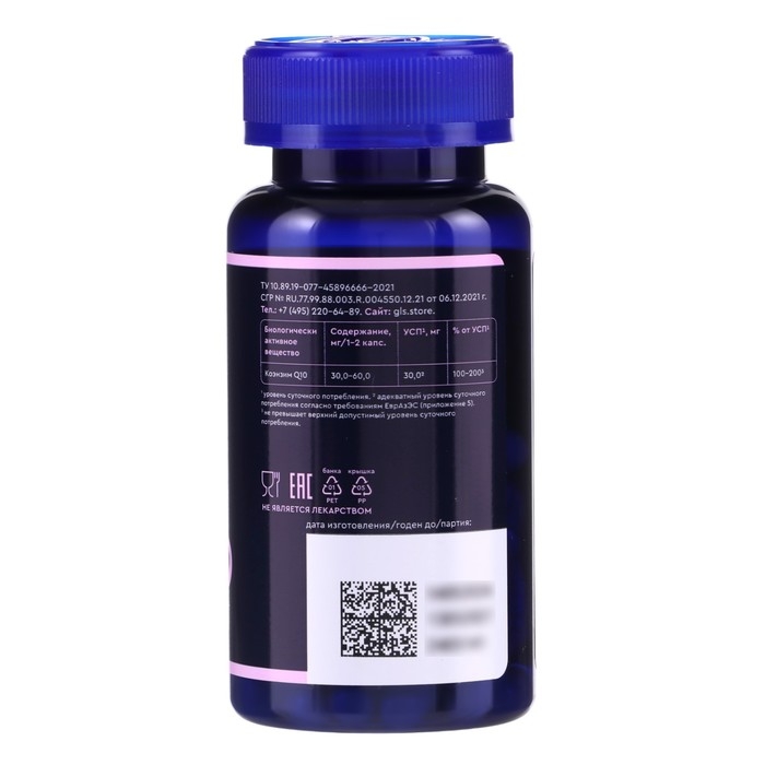 GLS КОЭНЗИМ Q10 - Биологически активная добавка (БАД) к пище - Коэнзим Q10 (Убихинон) - витаминоподобное вещество, катализатор жизненно важных процессов организма.