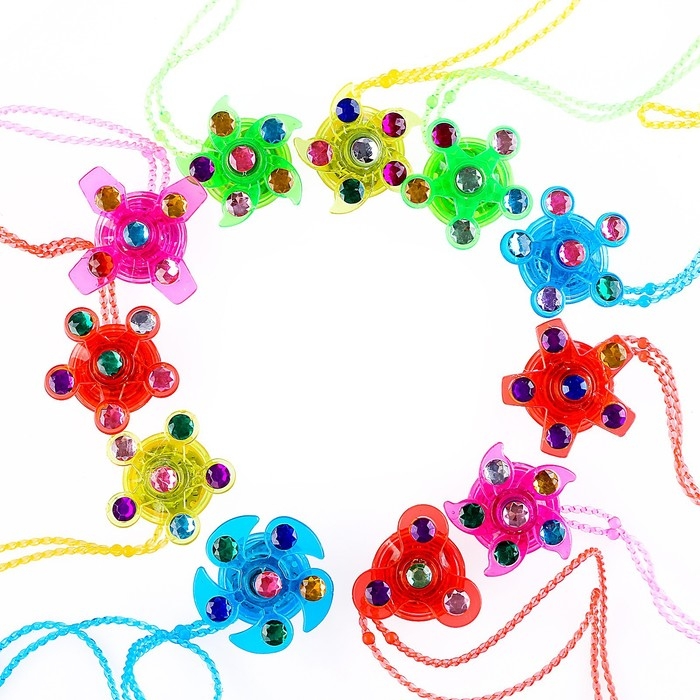 - Спиннер сделан в виде подвески на цепочке, это позволяет ребёнку носить его на шее и использовать в любой момент.